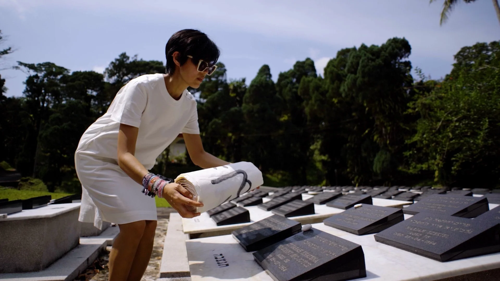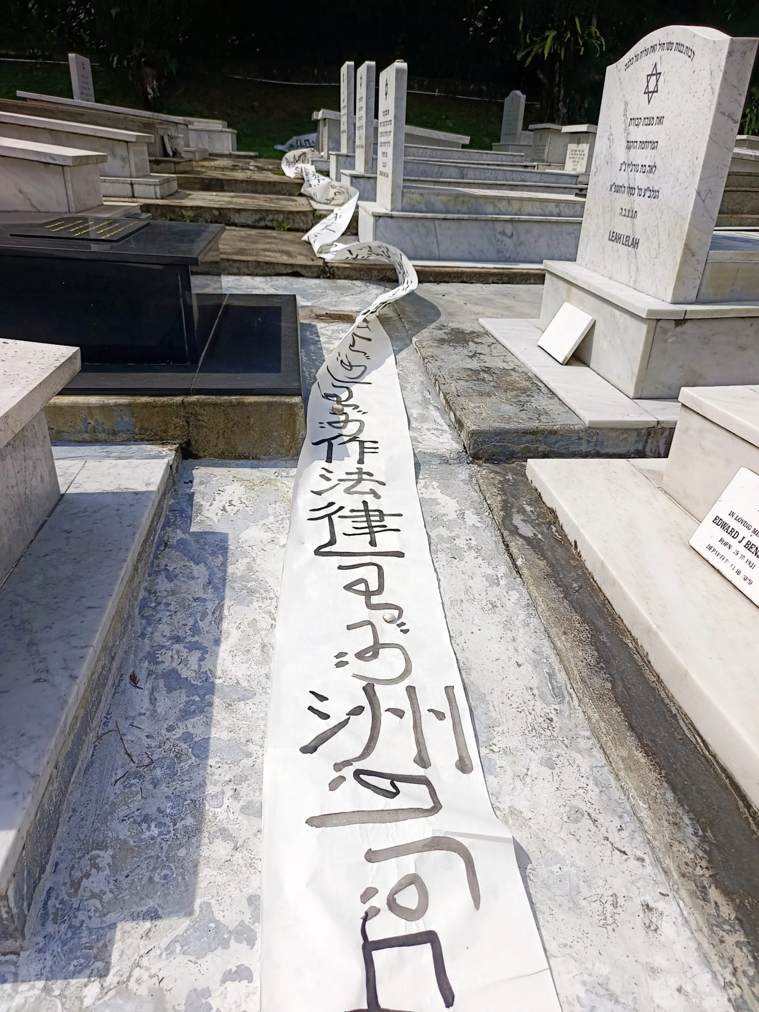 The second performance follows the scroll to Singapore, my family's home. I recently performed a ceremonial walk through our family cemetery, unrolling portions over ancestral graves, then wrapping it around my body as a symbolic shroud. This ritual honors my culture's burial traditions and explores themes of ancestral roots and identity.